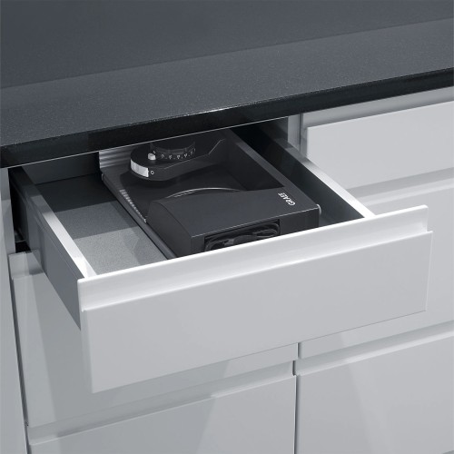 Одна з ключових переваг — можливість компактного складання, що значно спрощує зберігання на кухні. Корпус виконаний із міцних матеріалів, стійких до зношування, а нековзні ніжки гарантують стабільність під час роботи. Система захисту та фіксації продукту підвищує безпеку використання.