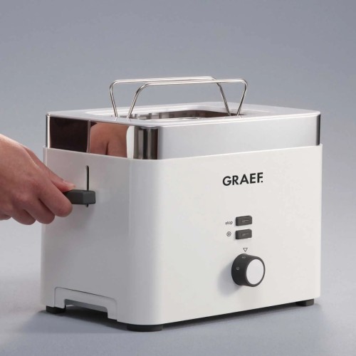 Тостер GraefTO 61 купити необхідно тому, що його корпус теплоізольований, тому не нагрівається, а ви не отримаєте неприємних опіків рук і пальців. Він пофарбований у білий колір та має чіткі форми. Завдяки такому підходу, його дизайн чудово підійде для будь-якої кухні, господарі якої люблять дуже якісну продукцію, а також чудове приготування улюблених тостів щоранку. Модель зможете забезпечити шматочками хліба красиву золотисту скоринку. Крім цього, хліб матиме смачну хрустку скоринку. Якщо вам потрібно розігріти хліб або булочку, ви можете скористатися спеціальною підставкою, яку виробник виконав з нержавіючої сталі. Також модель обладнана лотком, у якому відбувається збір крихт. Ви зможете дістати його для чищення без проблем – для цього є спеціальний піддон. Модель досить проста в користуванні, тому навіть дитина приготує смачні тости до чаю або кави. Підсмажені шматочки хліба чудово підійдуть і до молока.